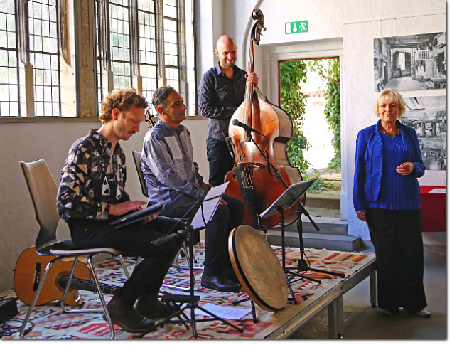 Francesco Cascarano, Hesam Asadi und Claas-Henning Dörries entführen in ungewöhnliche Klangwelten von Orient bis Okzident. Barockmelodien treffen auf kurdisch-iranische Musik und auf Eigenkompositionen. Ein orientalischer Imbiss rundete das Programm ab.