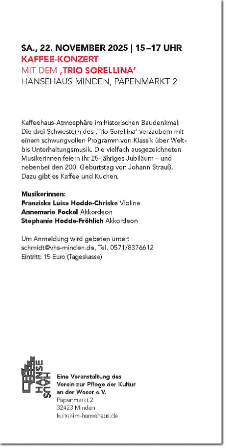 Um Anmeldung über VHS Minden wird gebeten: Tel: 0571 8376612 • schmidt@vhs-minden.de